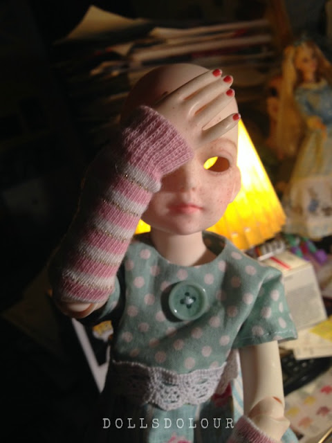 Esther looks so cute, I find you were so brave doing all the carving and face upping! Especially the carving part, i've always been so afraid to do that. You didn't like the upper lashes? I think they were nice but she looks nicer without them, agreeing with Alejandra above that maybe softer colour would look nice. ^^ I hope you will find some. I find that photo where she whispers to piggy-piggy what she's been trough very moving. <3 Esther you're so pretty with frecles.